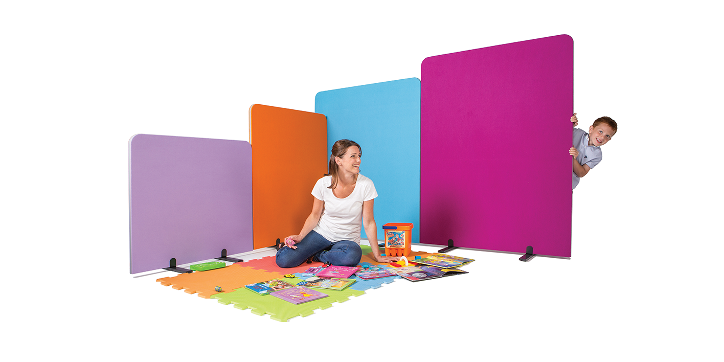 32mm thick partition screens with rounded upper corners and rounded edge trim. 2 stabilising feet per panel, option castors feet for mobility. Available in a large selection of woven or loop nylon colourways. A range of 11 sizes in 5 height options.