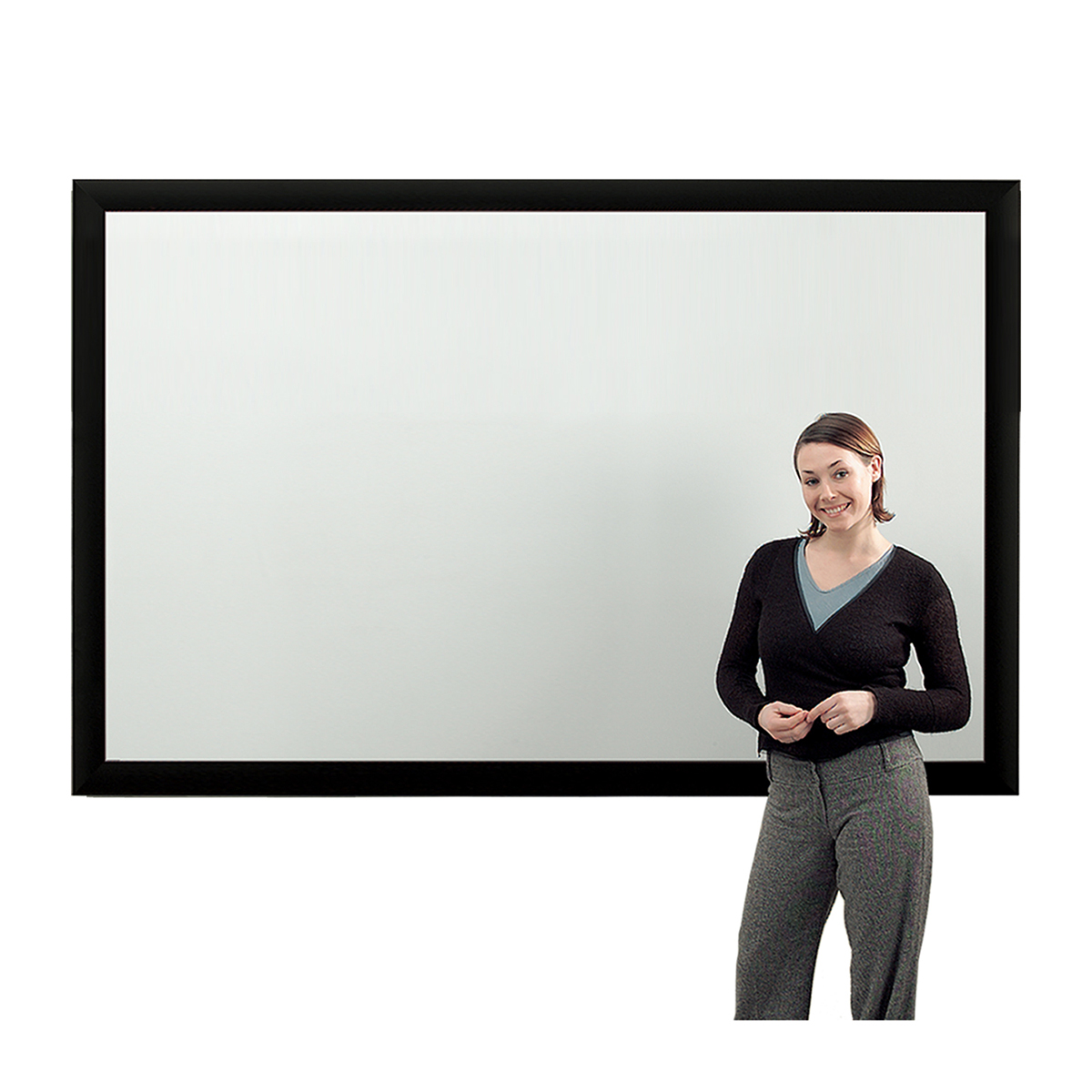 • The screen fabric is then tensioned and fitted to the rigid frame giving a superior flat surface. The frame creates a stunning black border to enhance the projected image.