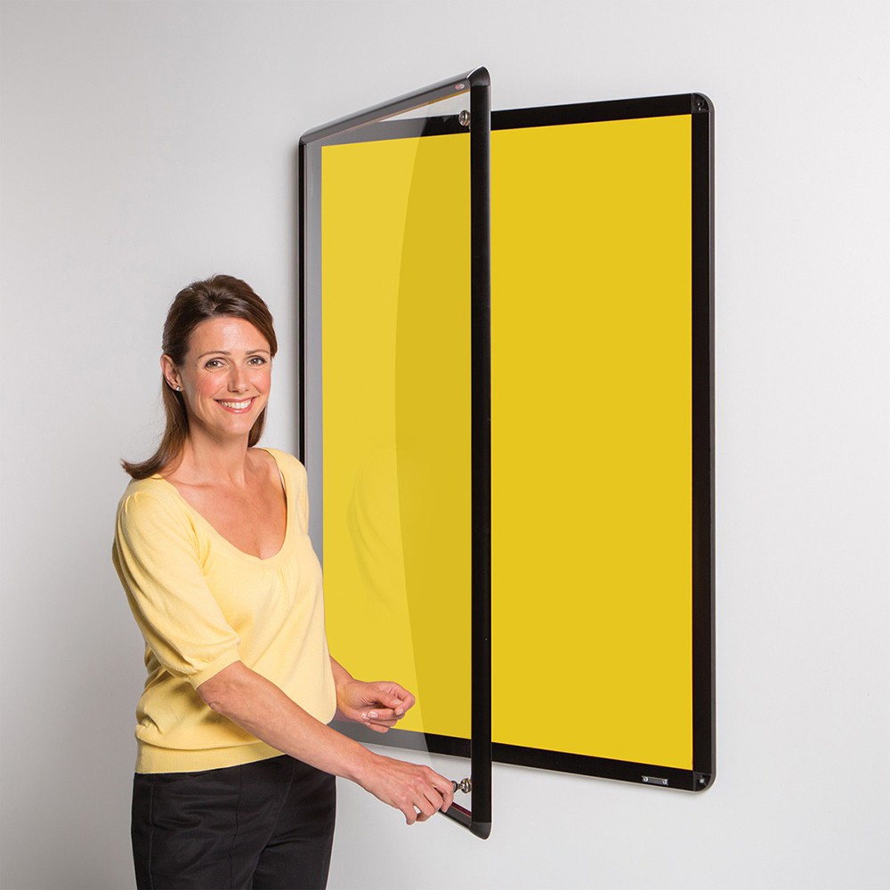 - Contemporary styling, heavy duty construction and optional coloured framing creates an eye-catching lockable noticeboard.