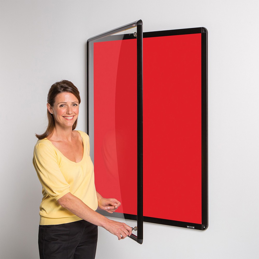 - Contemporary styling, heavy duty construction and optional coloured framing creates an eye-catching lockable noticeboard.