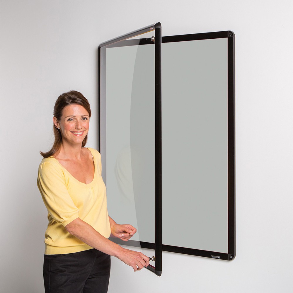 - Contemporary styling, heavy duty construction and optional coloured framing creates an eye-catching lockable noticeboard.