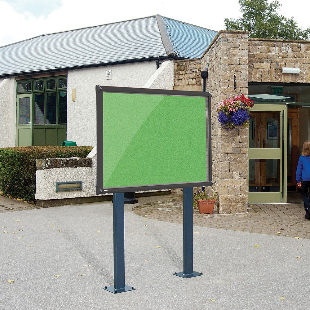 - This new frame finish offers a traditional look and feel but without the maintenance requirements that a wood product would require. This post mounted showcase features a powder coated steel backing plate for rear weatherproofing and is supplied complete with powder coated heavy duty galvanised steel posts for securing with bolts to a concrete surface.